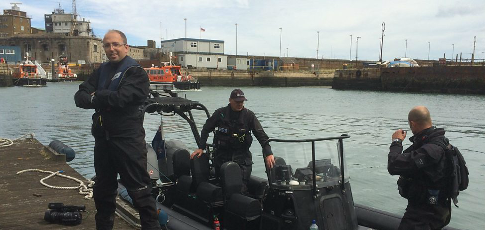 Last weekend, PCs David Lavender and Ron Murray from the Kent Police Search and Marine Unit took BBC Radio Kent reporter Alex Bish out on their RIB “Seahorse” to show how they look out for terrorists and people smugglers. If you see anything suspicious dial 101 and say Operation Kraken.