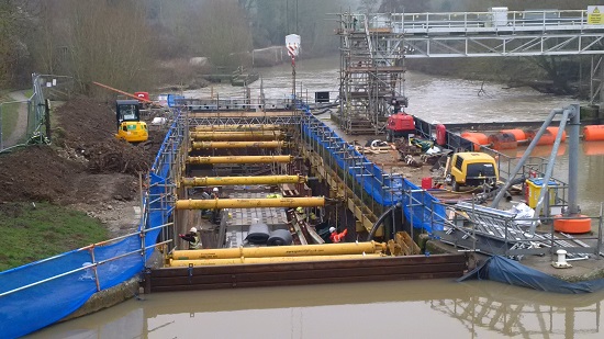 To fix this issue, they now need to get a large 14 tonne digger onto that side of the lock to excavate that area to below the bottom of the lock, and to install a new 3 metre thick 5 metre high concrete wall. In addition they need to install some temporary steel sheet pile framework to hold the land back while working to prevent any land slip or movement of the railway track. In order to provide this digger there needs to be a floating pontoon built to transport the said digger to the right location, as there is no road or vehicle access from that side of the river,