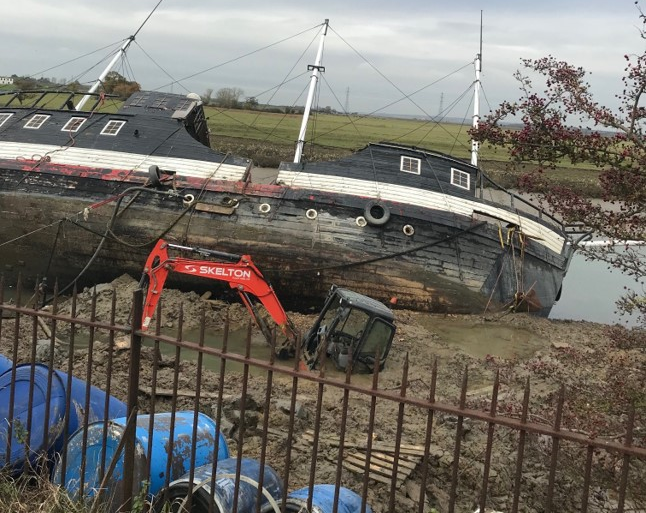 Salvage of Revenge by MSBA Webmaster · 17th November 2017 A bit of theme is developing around here. An unconventional approach to salvage work appears to be underway of the infamous “pirate ship” Revenge in Faversham Creek. Photo courtesy of Paul Cuckow and his colleagues.