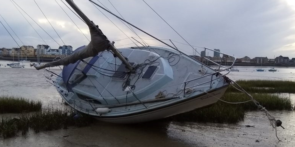 This yacht was beached at Cockham Wood Fort, north shore between Wilsonian SCĀ and Hoo Ness YC. Her name is Prikalthum, she was lying on her side, mast towards the shore. Medway VTS and the Coastguard have been informed. The HNYC mooring master has put her back on her mooring.