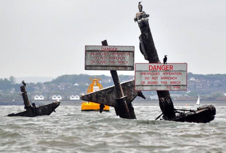 Tim predicts that if one of the bombs from the Montgomery were to end up in the Medway Approach Channel, just yards away, where LNG tankers pass by with little water under their keels, the result could be horrific. He has proposed that the wreck should have a fog horn or a virtual AIS aid to navigation.