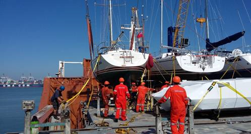 Cantilena lands on the deck of MV Singelgracht in Southampton